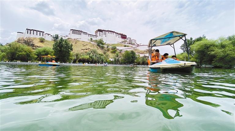 圖為拉薩市民在宗角祿康公園劃船游玩。記者 格桑倫珠 攝
