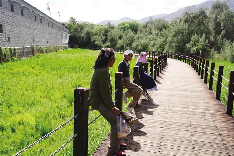 拉薩濱河公園是依托拉薩河3號閘建成的一處寬闊的濱水景觀和生態(tài)濕地長廊,在這里不僅能看到水光瀲滟的拉薩河,還能漫步在健步道欣賞沿途風(fēng)景。順著步道往里走,道路兩旁花朵開得嬌艷,在綠葉的映襯下閃爍著耀眼的光彩。來到球場邊,目光隨著那群年輕的身影轉(zhuǎn)動,他們身姿矯健,在奔跑追逐中揮灑汗水,洋溢著青春的活力。