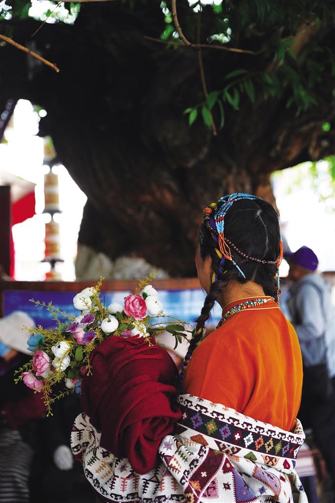 走在熙熙攘攘的八廓街,古樹已經(jīng)枝繁葉茂,陽(yáng)光很難穿透密集的葉子,只能勉強(qiáng)擠出幾束光,碎落在古樹下乘涼的老人腳下。樹下拍照的游客自成一道風(fēng)景,享受著高原夏日的美好時(shí)光。