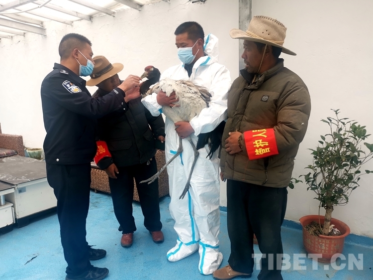 西藏阿里馬攸橋邊境檢查站救助國家一級保護動物丹頂鶴