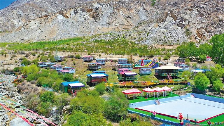 拉薩的夏天,是林卡的季節(jié)。進(jìn)入夏季以來,前來維巴村林卡游玩的市民絡(luò)繹不絕,一派熱鬧景象。走進(jìn)這些林卡,綠樹掩映、流水潺潺、鮮花開放、溫度宜人,一頂頂帳篷散落在小溪邊更顯詩意,帳篷旁寬敞干凈的游泳池在陽光的照耀下泛著點點金光,人們漫步草地上悠閑地賞景,享受著夏日里的清涼。目前,維巴村共有25家大大小小的林卡,其中不乏網(wǎng)紅林卡,一到節(jié)假日林卡里就會出現(xiàn)火爆的場面。