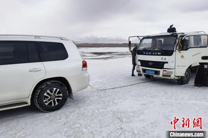 這段路前100公里是公路,后400多公里是碎石路。好在運(yùn)氣不錯,天氣較冷,沼澤泥路還沒有化凍,車輛通過性比較高。即便如此,一些地方貨車還是會陷進(jìn)泥潭,需要用小車拖拽才能前行。快到站點(diǎn)附近有一條河,只能憑大致方向牽引著貨車前進(jìn),這是整個路程中最難走的一段。全程走了近12個小時,回想這500多公里的路程,馬洪杰還是心有余悸。