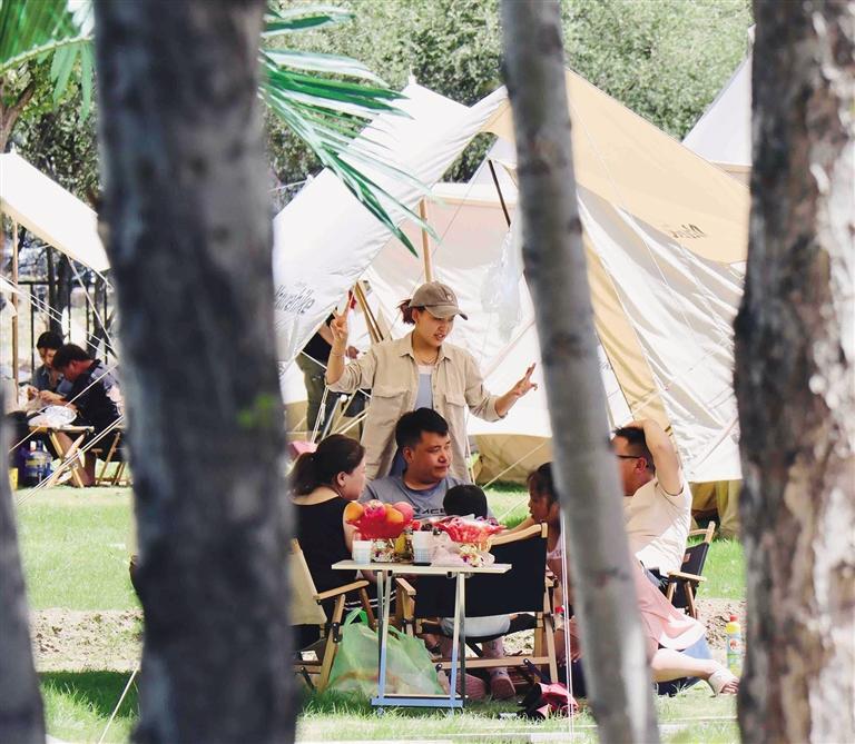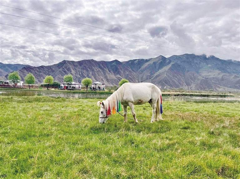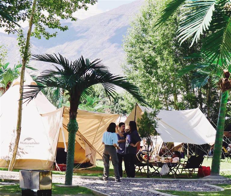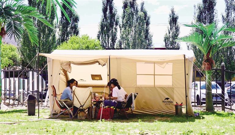 在拉薩,還未踏進林卡營地,便能聞到烤肉的香氣,尋著歡笑聲走去,你會發(fā)現(xiàn),這些林卡營地宛如“桃花源”呈現(xiàn)在眼前。不論是藏式林卡營地還是西式露營地,都有共同的“魔力”——把“煩惱”擋在門外。一頂頂白色的帳篷和天上的朵朵白云相呼應,綠色的草地是夏天才有的限定“地毯”,抬頭,油綠而繁茂的樹葉在微風中婆娑,似乎在回應著樹下人群的歡笑。讓人不禁感嘆,原來,大自然才是治愈內(nèi)心最好的良藥。