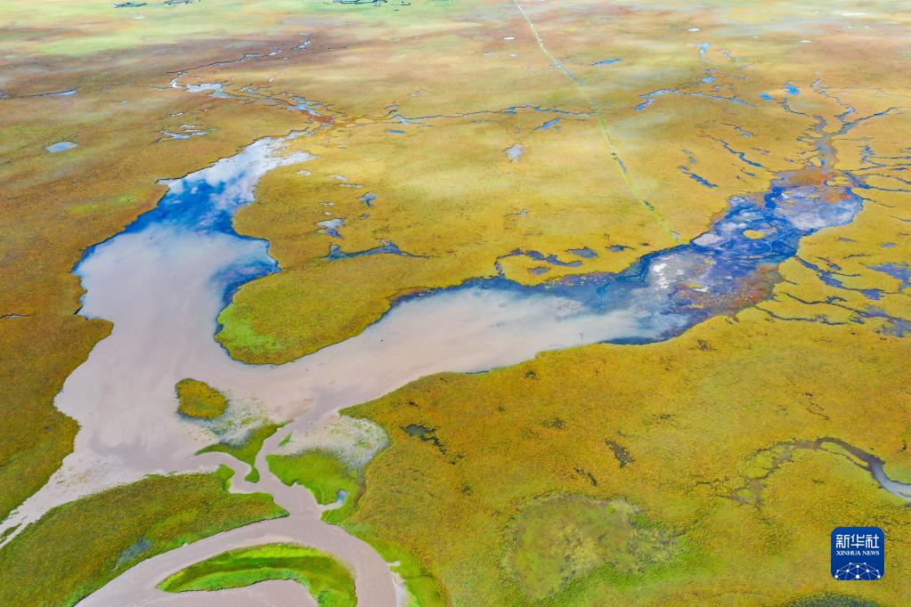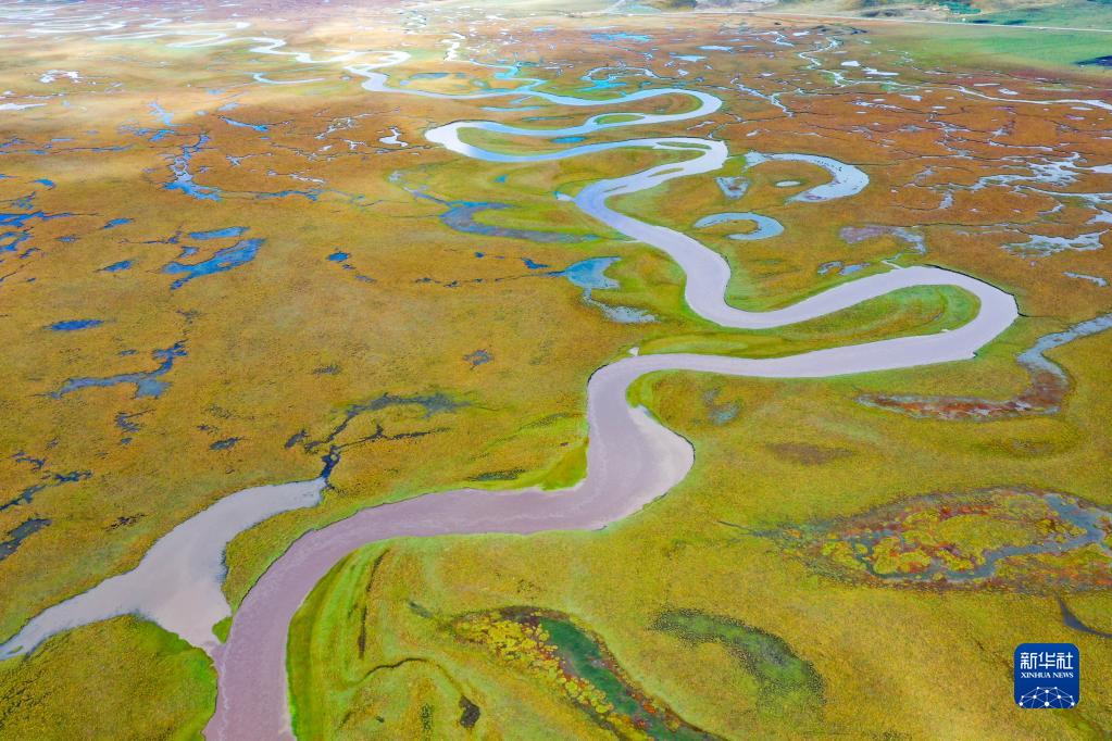 這是瑪曲縣阿萬倉濕地內(nèi)的河流和沼澤(9月17日攝,無人機照片)。新華社記者 郎兵兵 攝