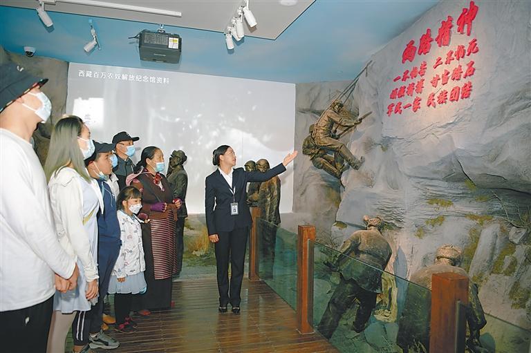 大力弘揚“兩路”精神和老西藏精神,凝聚共創(chuàng)美好未來的強大奮進力量。圖為2022年3月,西藏各族群眾參觀西藏百萬農(nóng)奴解放紀念館。