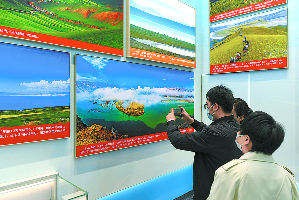 雪豹、兔猻、黑頸鶴、馬麝、廣布紅門蘭、水母雪兔子、紅花綠絨蒿……青海特有的動(dòng)植物照片墻吸引觀眾駐足,珍稀動(dòng)物的生活智慧和罕見植物的生長(zhǎng)歷程通過攝影師的鏡頭,向世界展示了青海生物多樣性保護(hù)取得的顯著成就。