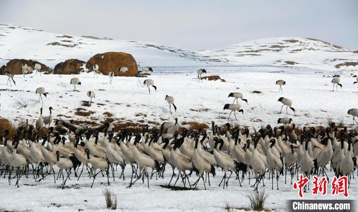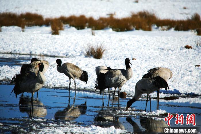 31日,2022年越冬黑頸鶴“先頭部隊(duì)”已抵達(dá)云南昭通大山包國家級(jí)自然保護(hù)區(qū)內(nèi)的大海子濕地。