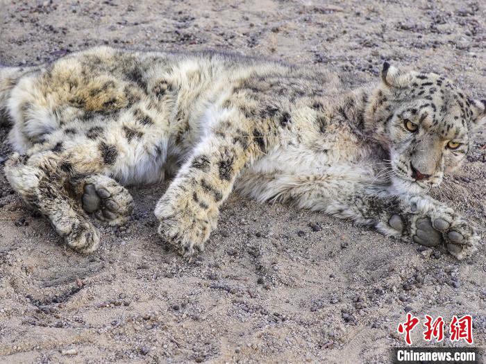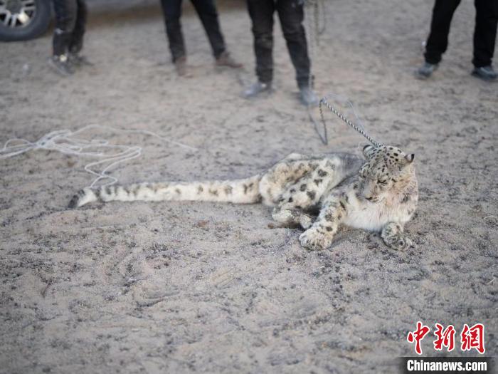 據(jù)駐村工作隊工作人員鄭殿之介紹,這只雪豹吃飽喝足后仍“賴在”羊圈,當被牧民發(fā)現(xiàn)后,佯裝虛弱。被捕捉后,工作人員檢查無傷后,便將雪豹放歸了自然。