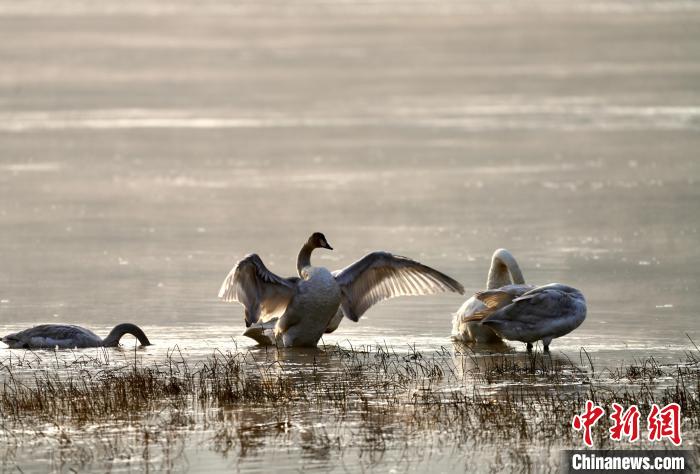 天鵝等多種野生鳥類“抵達(dá)”青海格爾木濕地越冬