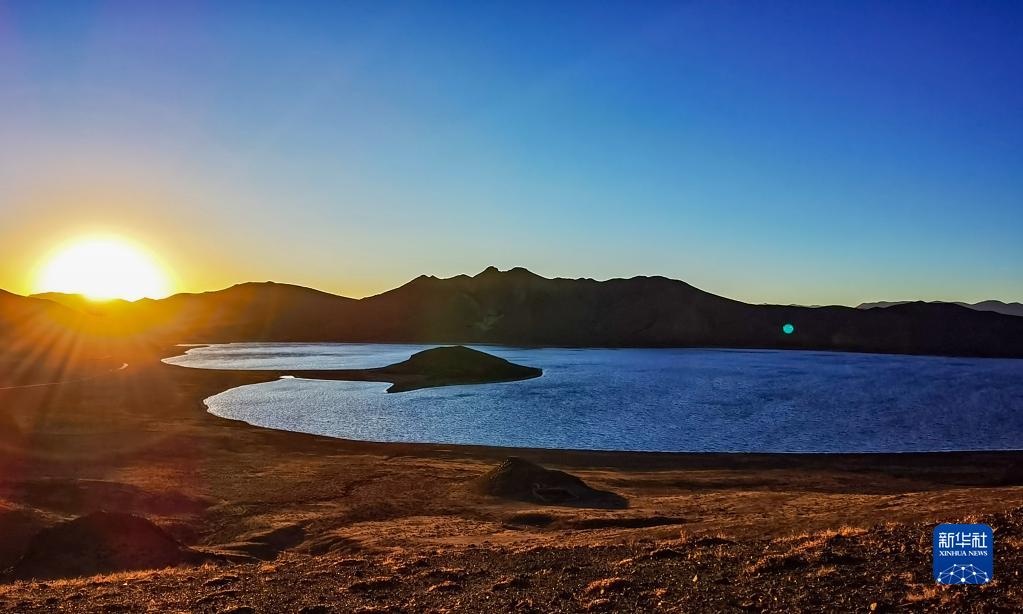 這是夕陽(yáng)下的羊卓雍錯(cuò)(手機(jī)照片,1月1日攝)。新華社記者 沈虹冰 攝