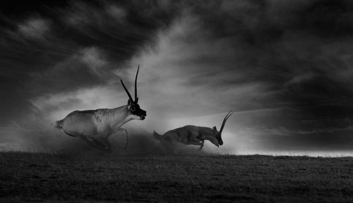 圖為焦生福作品《角逐》?!∏嗪J∑钸B山自然保護(hù)協(xié)會(huì)供圖