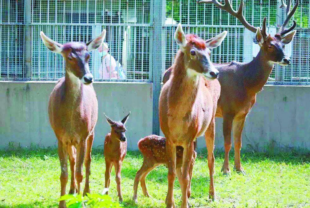 據(jù)介紹,五年來,四只“友誼之鹿”在飼養(yǎng)員的精心照料下茁壯成長,并在這里繁衍后代。2021年8月,白唇鹿“家族”雙喜臨門,雄性白唇鹿“京京”分別與雌性白唇鹿“援援”和“念念”生下了寶寶,分別取名“健健”和“康康”?,F(xiàn)如今,兩只小家伙能吃能睡,快樂成長。