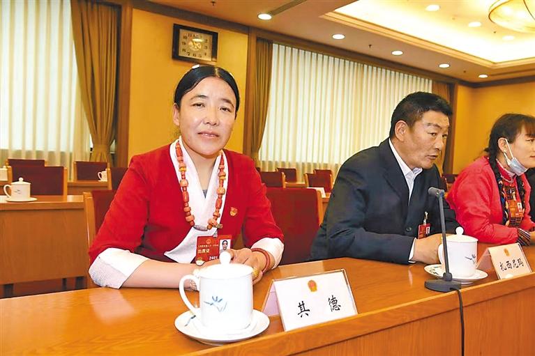 “我的家鄉(xiāng)山清水秀、景色優(yōu)美,誠摯邀請各位朋友來那曲巴青觀光旅游,我們將以最傳統(tǒng)的民俗、最真誠的禮儀、最熱情的方式歡迎您!”從家鄉(xiāng)出發(fā)到首都北京,全國人大代表、那曲市巴青縣江綿鄉(xiāng)坡榮塘村黨支部書記其德一路都在向其他代表發(fā)出“邀請函”。
