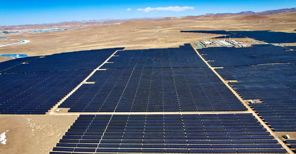 西藏華電那曲色尼區(qū)12萬千瓦光伏發(fā)電電力保供項目全景。新華社記者劉洪明 攝