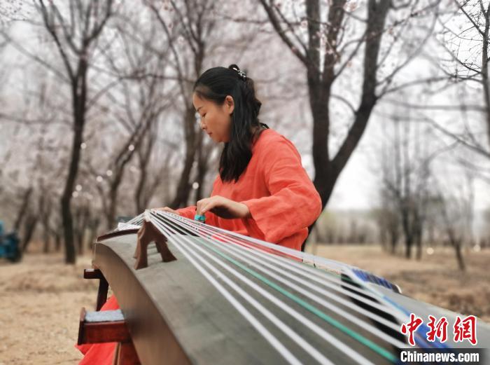 來(lái)自青海西寧的古力在杏花林撫琴,“我特意來(lái)到這邊,在杏花林彈古箏,畫(huà)面很美。花間彈琴本身是一種享受,希望也能感染踏青賞花的游客?!?/p>