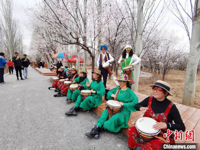 圖為一支樂(lè)隊(duì)在杏花林表演?!?zhí)砀?攝