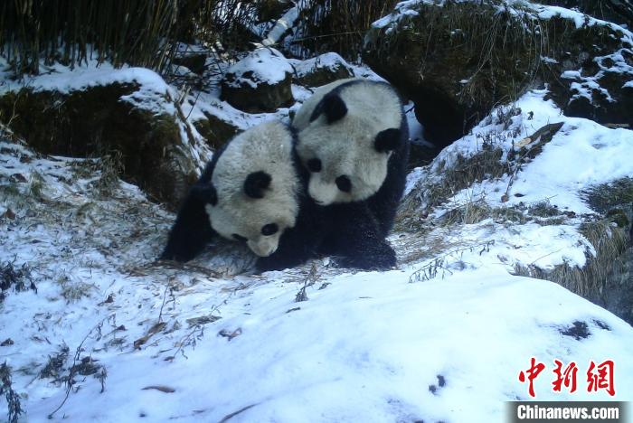 熊貓媽媽教授熊貓寶寶啃、咬、推、擠等動(dòng)作。 桃花源老河溝保護(hù)中心供圖