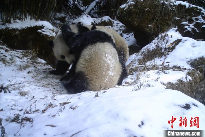 四川平武:熊貓“寶媽”花式帶娃 教授孩子生存技能
