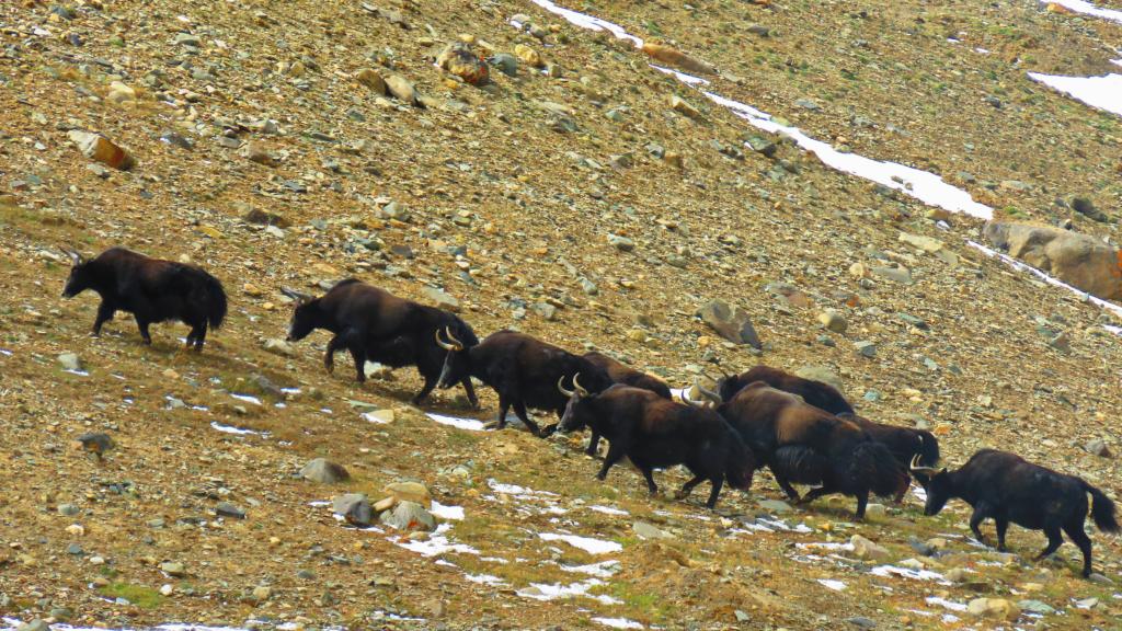 在青海省玉樹藏族自治州曲麻萊縣曲麻河鄉(xiāng)昂拉村拍攝的野牦牛(2020年9月16日攝)。新華社 濤西昂扎 攝