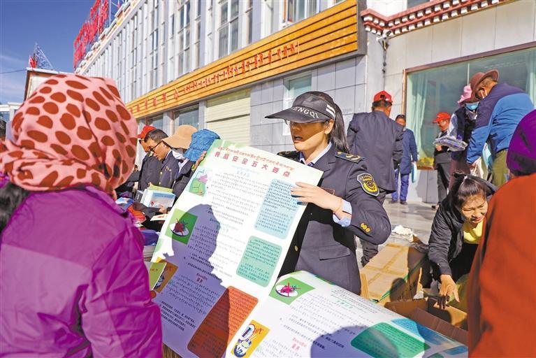 圖為阿里地區(qū)市場監(jiān)管局工作人員為群眾講解食品安全知識(shí) 。記者 洛桑旦增 攝
