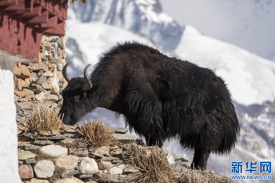 5月13日,棲息在珠穆朗瑪峰游客大本營附近的牦牛。 新華網(wǎng) 旦增努布 攝