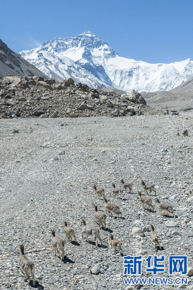 5月9日,棲息在珠穆朗瑪峰登山大本營附近的巖羊。新華網(wǎng) 旦增努布 攝