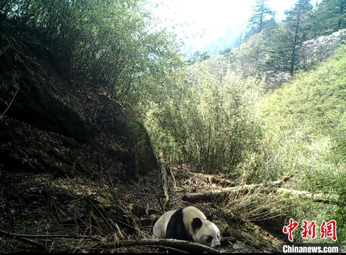 紅外相機(jī)拍攝到的野生大熊貓?!〈笮茇垏夜珗@平武老河溝片區(qū)供圖
