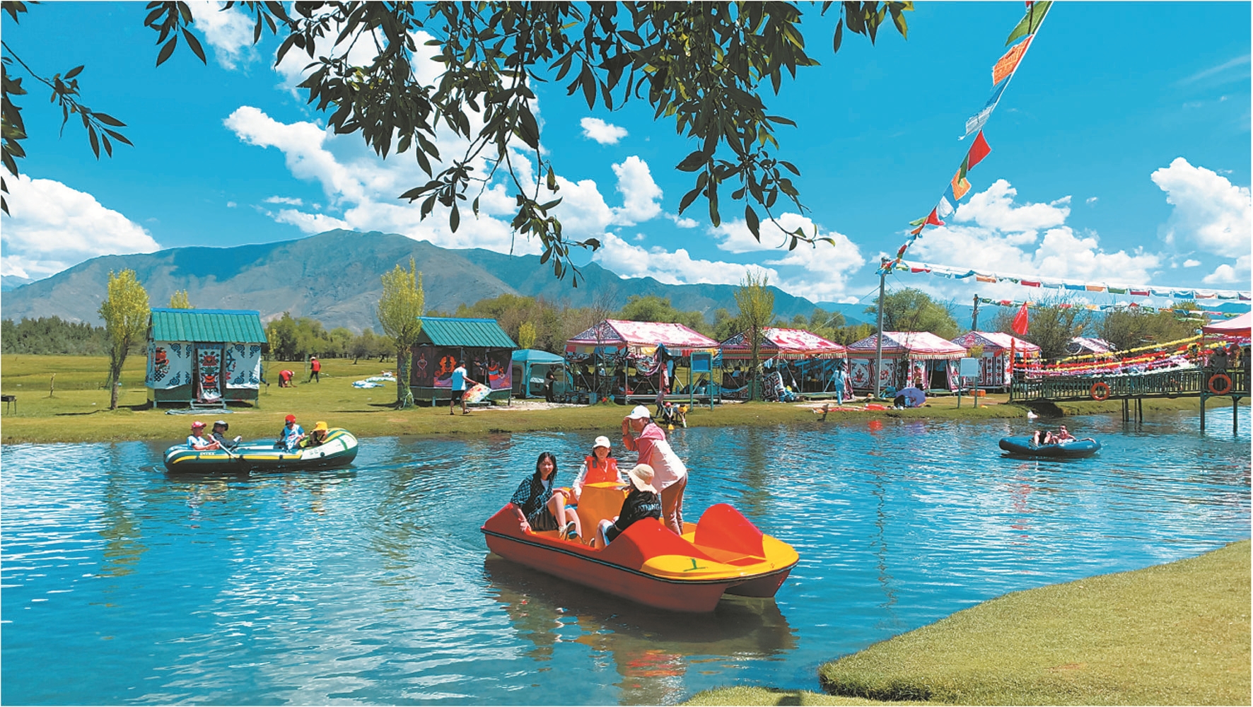 時(shí)下,正是“過(guò)林卡”的最好時(shí)節(jié),為了吸引客源、招攬生意,林卡經(jīng)營(yíng)者不斷完善基礎(chǔ)設(shè)施,搭建漂亮的帳篷,提供特色服務(wù),滿足市民游客戲水、劃船、健身運(yùn)動(dòng)和特色美食等需求。