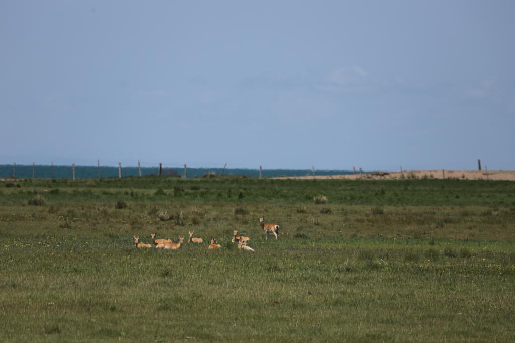 這是2023年6月26日,調(diào)查人員在青海湖畔監(jiān)測到的普氏原羚。新華社發(fā) 孫建青 攝
