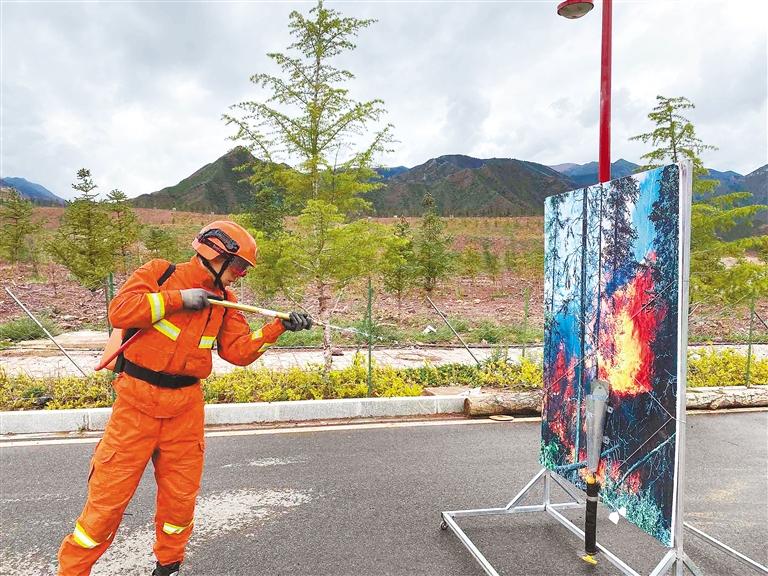 消防員進(jìn)行水槍操作訓(xùn)練,不斷豐富實(shí)戰(zhàn)化訓(xùn)練內(nèi)容。