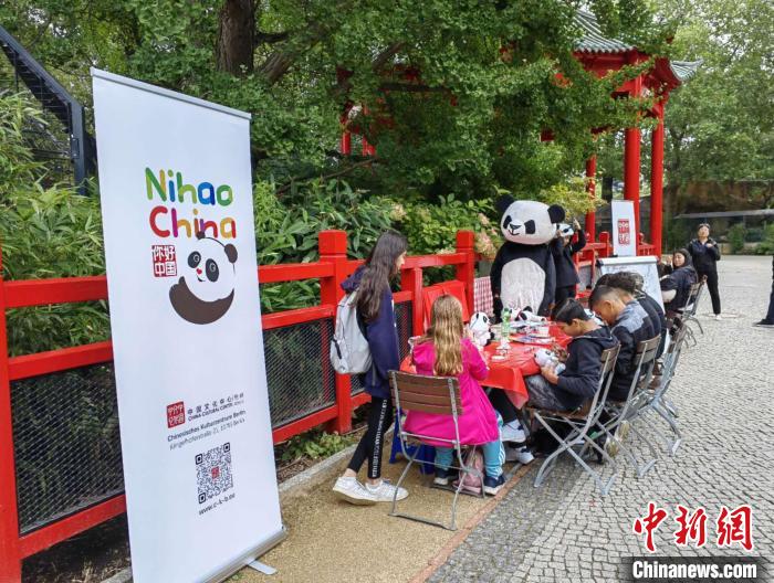 8月31日,柏林中國文化中心在熊貓館旁設(shè)立了展位,向游客們推廣大熊貓主題文化。柏林中國文化中心供圖