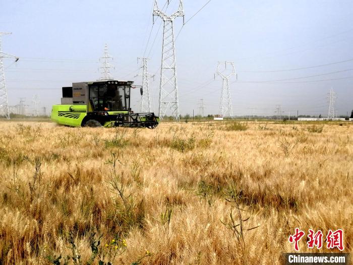 連日來,中國“鹽湖城”青海省格爾木市小麥進(jìn)入收割期。田野里,機(jī)聲隆隆,一臺(tái)臺(tái)聯(lián)合收割機(jī)穿梭麥田中,“吞”穗“吐”麥,一派豐收景象。