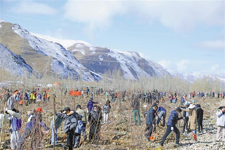 墨竹工卡縣干部職工秋季植樹現(xiàn)場。