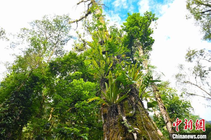 因氣候濕潤,森林里的樹上長滿了藤蔓植物、蕨類植物、苔蘚。在這里,植物從空間上獲得了最大密度的生長。開滿粉色花朵的植物從樹上倒掛而下,科考人員一眼辨認出是大花水東哥,奈何正是花期無法采集種子。