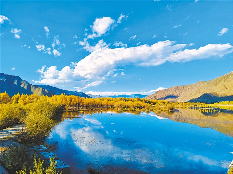 藍天、白云、湖泊、草原、樹林,拉薩深秋的色彩最為豐富,風光最為寧靜、澄澈、壯美。