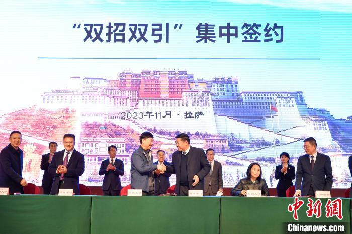 14日,西藏自治區(qū)在拉薩舉行“雙招雙引”(援藏招商引資、招才引智)集中簽約儀式。簽約儀式上,共簽約援藏招商引資項目20個,協(xié)議資金103.08億元(人民幣,下同),涉及清潔能源、生物科技、特色農(nóng)牧、綠色工業(yè)、現(xiàn)代服務等領域。21名引進專家人才代表參加現(xiàn)場簽約。