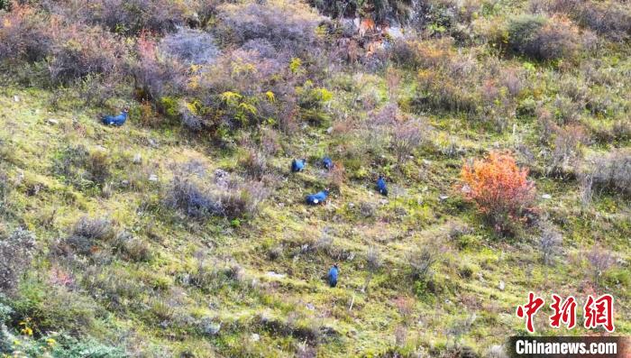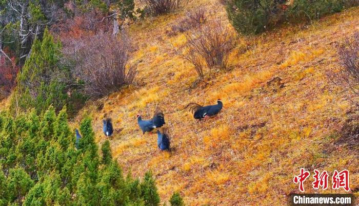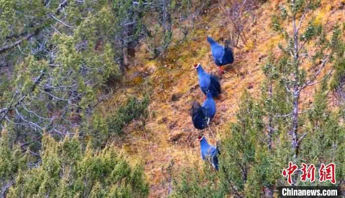 日前,十多只國家二級重點保護野生動物藍馬雞現身長江源上游主要水源地青海省班瑪縣多柯河林區(qū),只見他們時而在叢林中穿梭,時而在地上覓食。