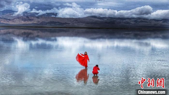 圖為柴達(dá)木盆地茶卡鹽湖“天空壹號(hào)”景區(qū)內(nèi),游客在鹽湖里拍照。(資料圖) 中新網(wǎng)記者孫睿 攝