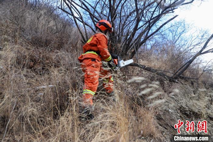 12月12日,西藏昌都森林消防邊壩駐防分隊清理枯枝等可燃物。昌都市森林消防支隊 供圖