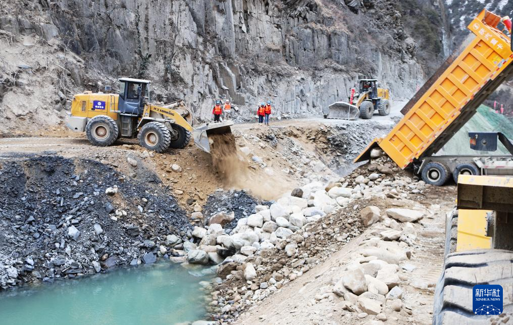 大唐扎拉水電站截流施工現(xiàn)場(1月3日攝)。新華社記者 關(guān)明輝 攝