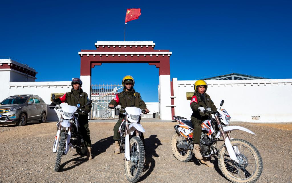 巡護隊員們騎上山地摩托車,準(zhǔn)備出發(fā)巡護(2023年12月17日攝)。新華社記者 姜帆 攝