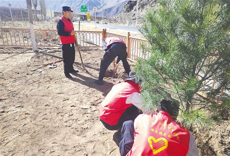 圖為拉薩市堆龍德慶區(qū)古榮護(hù)路大隊(duì)的隊(duì)員在植樹。記者 旦增蘭澤 通訊員 拉巴 攝
