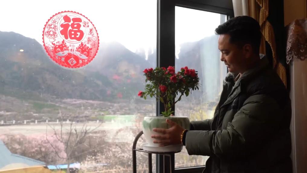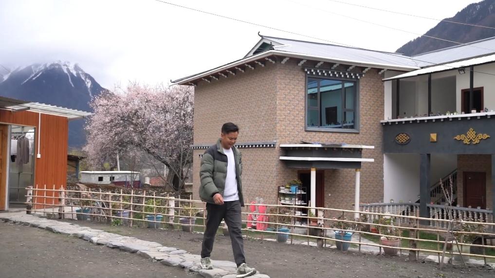 下午4點,林芝市波密縣傾多鎮(zhèn)古通村,遠來的游客入住到村民洛松頓珠開辦的民宿。寬敞的客廳里,藏式家具整齊大氣,窗外古老的桃花樹隨風(fēng)散落著陣陣花雨。