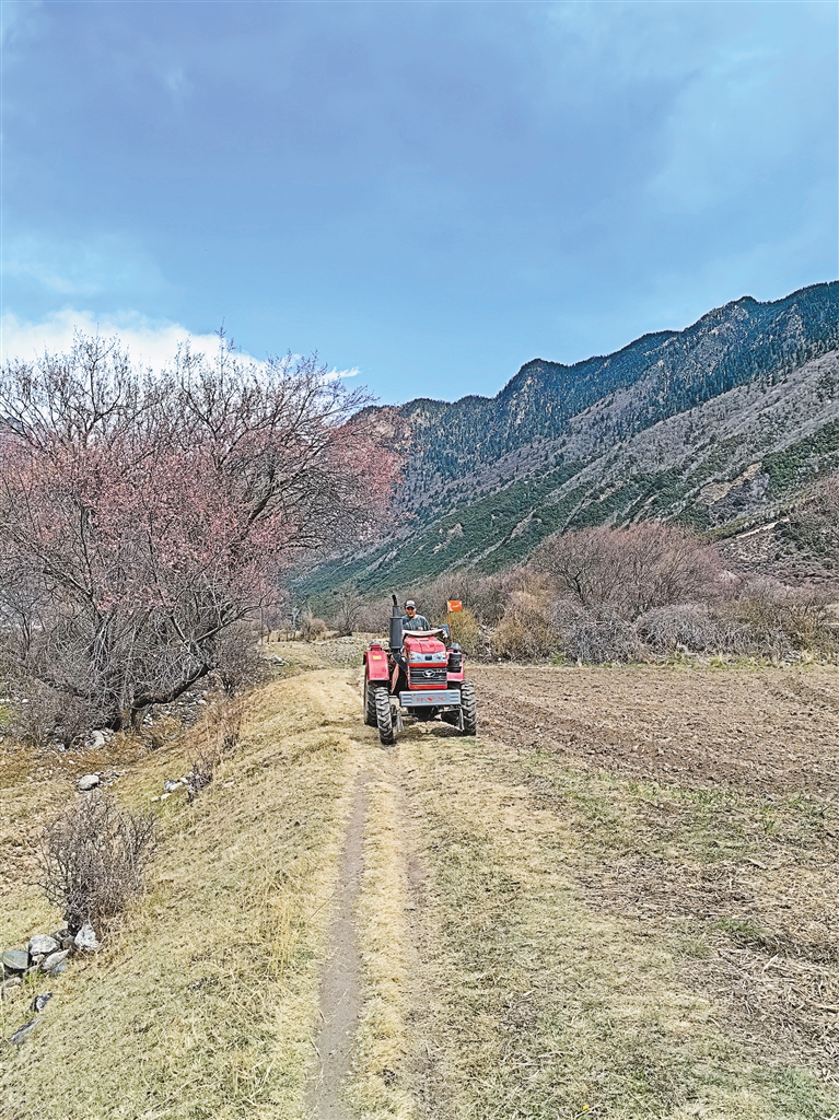 一輛紅色的旋耕機(jī)在田地旁停下來,曲美仁增邊換犁頭,邊感嘆著科技帶來的便捷:“以前耕地全靠牲畜,費(fèi)時(shí)耗力,現(xiàn)在開著旋耕機(jī)就把地耕完了,聽著這機(jī)器轟隆隆的聲音,我覺得格外開心,好像在說我們尼屋的春天特別美,我們的生活肯定也會(huì)更幸福!”