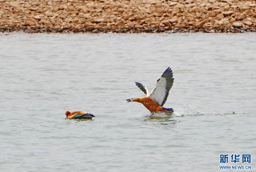 虎頭山水庫里的赤麻鴨(4月24日攝)。新華社記者 張汝鋒 攝