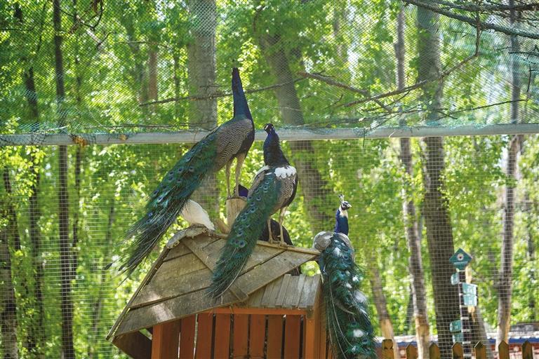 乘著觀光車前行,一路都被綠葉青草圍繞。觀賞完動物,記者一行在動物園內(nèi)的餐廳就餐,等待美食的過程中,點一杯咖啡或甜茶,看著藍天白云和滿眼綠意,不時還能聽到孔雀啼鳴,別有一番滋味。