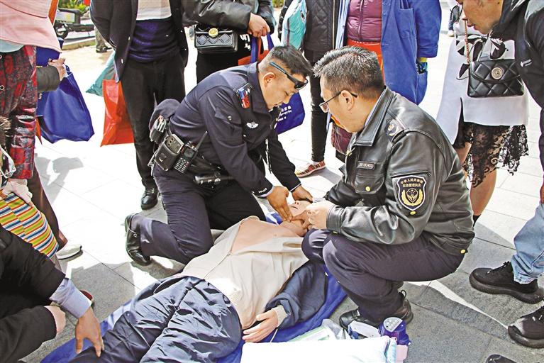圖為工作人員用假人進行急救措施講解。記者 劉斯宇 攝