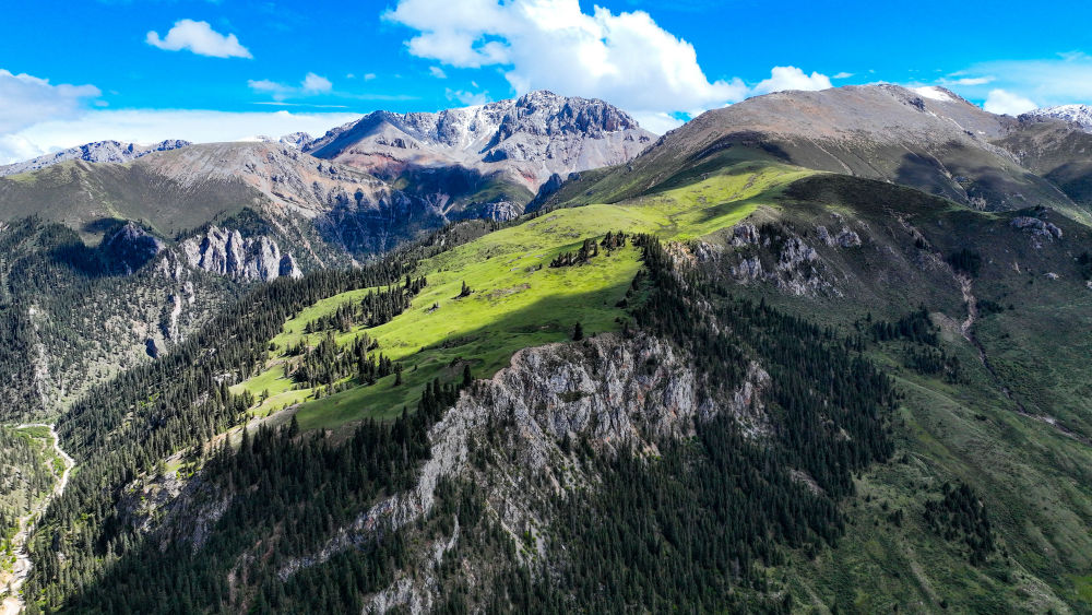 這是2023年6月18日在青海省玉樹藏族自治州囊謙縣拍攝的風(fēng)光(無人機(jī)照片)。新華社記者 張龍 攝