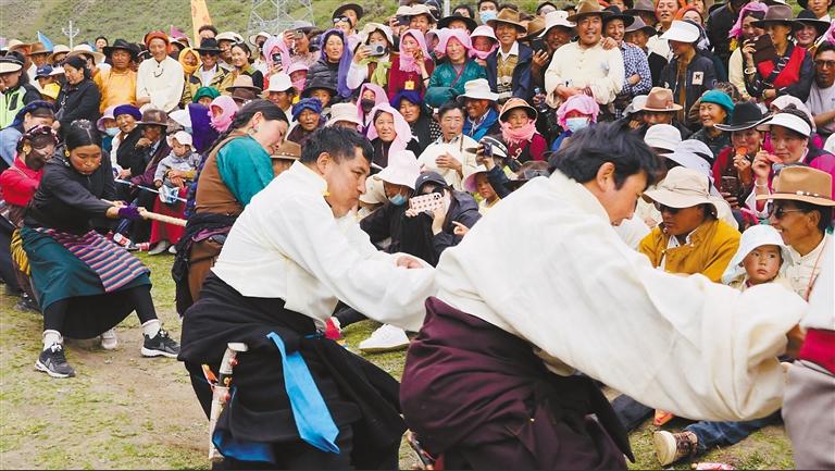“‘繽紛四季·多彩林周’活動(dòng)內(nèi)容實(shí)在是太豐富了,我們沿途觀賞到了美景,而且還體驗(yàn)了西藏民俗風(fēng)情,現(xiàn)場(chǎng)看到村民們擠牦牛奶、手工制作奶制品、指尖技藝制作酥油花等。讓我們感到震驚的是藏族大哥、大姐的力氣真是太大了,能用繩子拉動(dòng)越野車,扛起百斤重的石頭,給我們帶來(lái)了滿滿的視覺盛宴。我是第三次進(jìn)藏,這次的收獲最多,讓我體驗(yàn)到了不一樣的西藏。”來(lái)自北京的游客張先生興奮地說(shuō)。