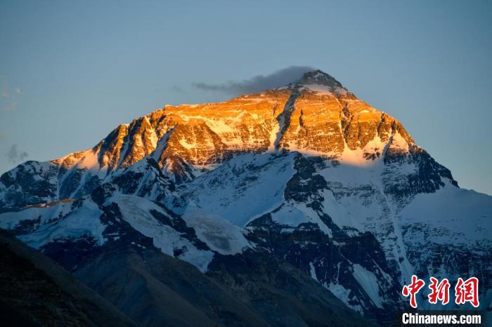 資料圖為西藏日喀則珠峰現(xiàn)“日照金山”景象。貢嘎來松 攝
